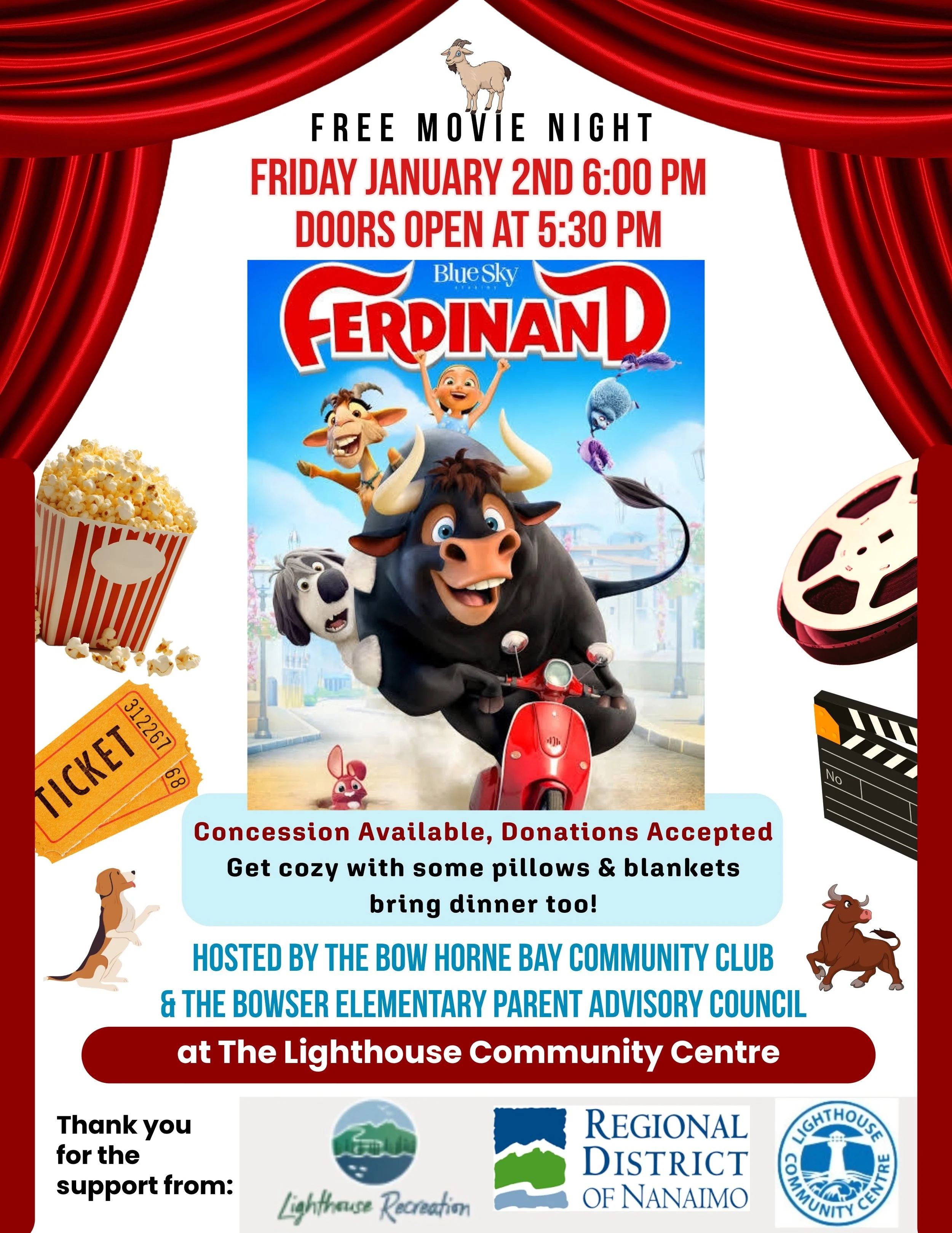 January 2, 2026 Dec 29 Written By BHBCommunityClub Featured Film: FERDINANDDoors Open at 5:30 pmMovie Starts at 6:00 pmAll Ages Welcome! BHBCommunityClub
